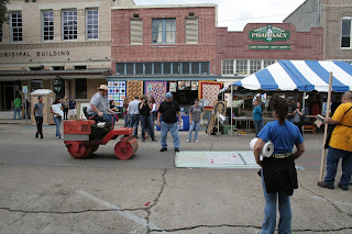 Currently on display in the Ben Bailey Art Gallery at Texas A&M University-Kingsville are a number of prints made in an unusual way. No normal press was used to make these prints although they were pressed, literally. During the recent Artwalk in downtown Kingsville, prints made on large wooden blocks were pressed on paper using a steam roller normally reserved for construction or road work.